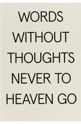 En una época en la que la palabra como unidad escrita es decir, el significado de la palabra y la palabra escrita se ha vuelto muy dispar debido a los medios digitales y las redes sociales, la exposición «Words Without thoughts Never to heaven go» (Las palabras sin pensamientos nunca llegan al cielo) apunta hacia la necesidad de examinar a fondo la palabra en las obras de arte. La exposición siguió la creciente importancia de las palabras en el arte, desde el modernismo hasta el siglo XX y la actualidad.Estado: Disponible para compra online en 10-15 días