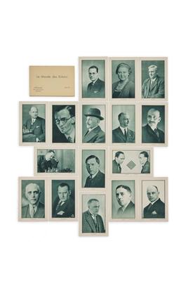 16 feuilles volantes avec des photographies en héliogravure de maîtres d'échecs, dont la première est un photomontage de Man Ray représentant une partie d'échecs entre V. Halberstadt et Marcel Duchamp. Dans une chemise imprimée d'origine.Status: With stock