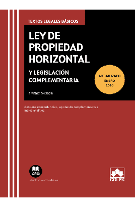 Descubra la Ley de Propiedad Horizontal y su legislación complementaria con esta obra. Se incluye un índice analítico y una selecció n de legislación en materias como hipotecas, acceso a servicios de telecomunicación, rehabilitación, edificación, legislación catala na y más.