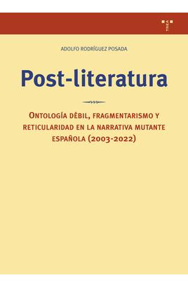 El término «post-literatura» vendría a designar aquella escritura que es posterior a la crisis de la literariedad, el fin teórico de la literatura como concepto poético hegemónico en la modernidad y la desterritorialización de lo literario como centro de gravedad del arte verbal. Aquel arte verbal presente pero sobre todo futuro que es resultado de la mutación genética de una literatura que, sin encajar con la definición moderna de lo literario por superarla y desbordarla, no deja de presentar por ello atributos que seguimos identific...Estado: Disponible para compra online en 4-5 días